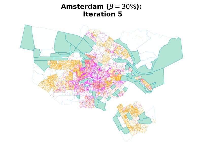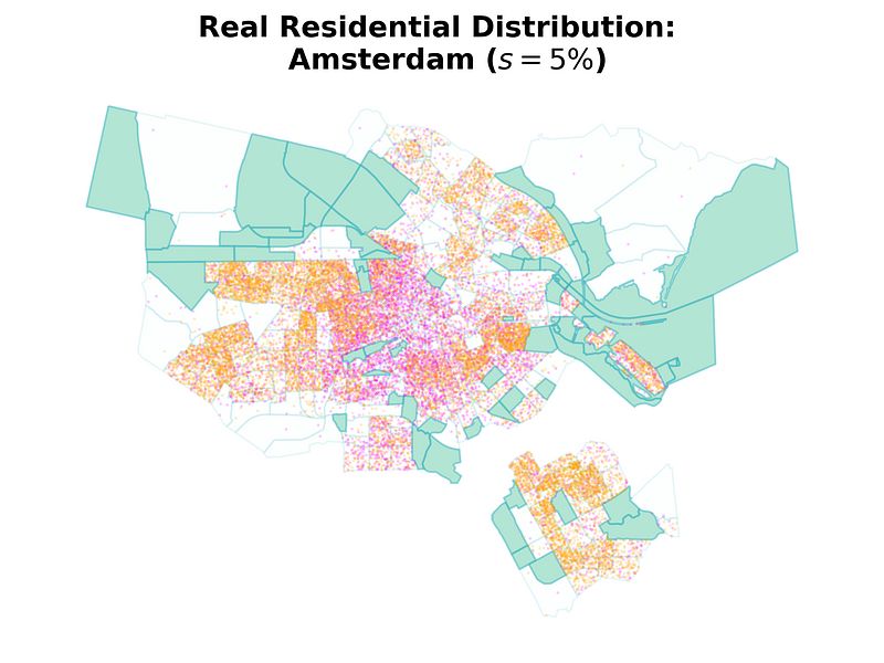 Simulating residential relocation based on homophilic composition threshold at individual level.